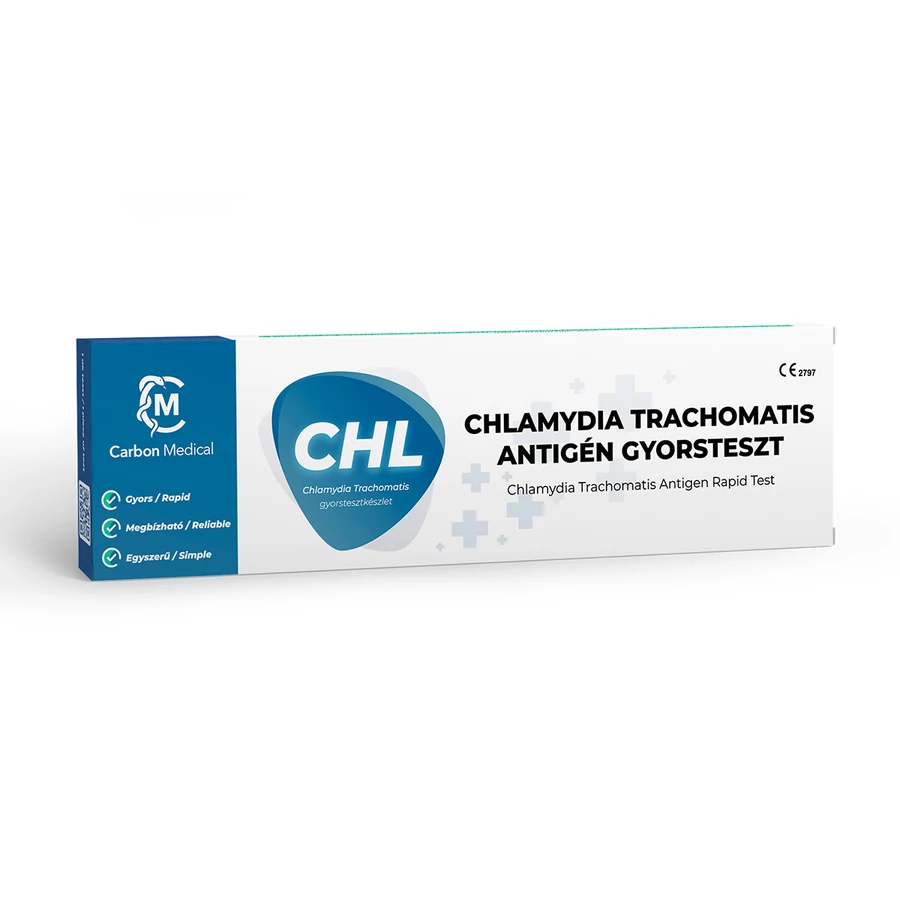 A Chlamydia egylépéses gyorsteszt a chlamydia trachomatis antigénjének emberi kenetből történő kvalitatív kimutatására szolgál női méhnyakkenetből, illetve férfi húgycsőkenetből. A chlamydia trachomatis előidézheti a szemgyulladást, a nemzőszervek és más szervek fertőzését, illetve hozzájárulhat a húgycsőgyulladás és a méhnyakgyulladás kialakulásához. Leginkább a fiatal felnőtt népességet érinti. A chlamydia lappangási ideje néhány nap és akár több hónap között van, de általában 1–3 hét. A fertőzött nők 70–80%-a, míg a fertőzött férfiak 50%-a nem mutat klinikai tüneteket, ezért is fontos a laboratóriumi diagnózis. A termék professzionális felhasználásra rendelhető meg.